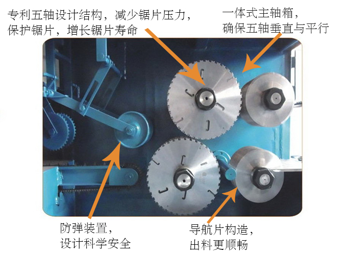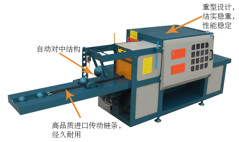ZQ250型多鋸片是針對(duì)原木鋸切而設(shè)計(jì)的專用機(jī)床,其主要特點(diǎn)與性能:采用五軸結(jié)構(gòu)設(shè)計(jì)-前鋸后導(dǎo)航確保木板的精確度,無(wú)論木板長(zhǎng)短均可保證鋸切木材尺寸公差在0.2mm-0.5mm之內(nèi),尺寸標(biāo)準(zhǔn)偏差小,節(jié)約木料,上下鋸軸,鋸片采用進(jìn)口帶刮刀鋸片,鋸切表面光滑,無(wú)需再刨,保證不燒鋸片。采用自動(dòng)分中裝置,提高木材的利用率;上壓輥主動(dòng)增加壓力,送料平穩(wěn);軸心噴水冷卻鋸片,去脂降溫,增強(qiáng)鋸片的使用壽命。一次多片,大大提高工效;