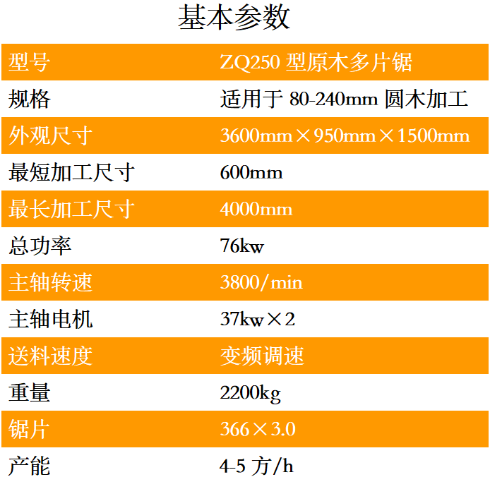 ZQ250型多鋸片是一種用于原木的開(kāi)破以及分片的高性能專用機(jī)械,