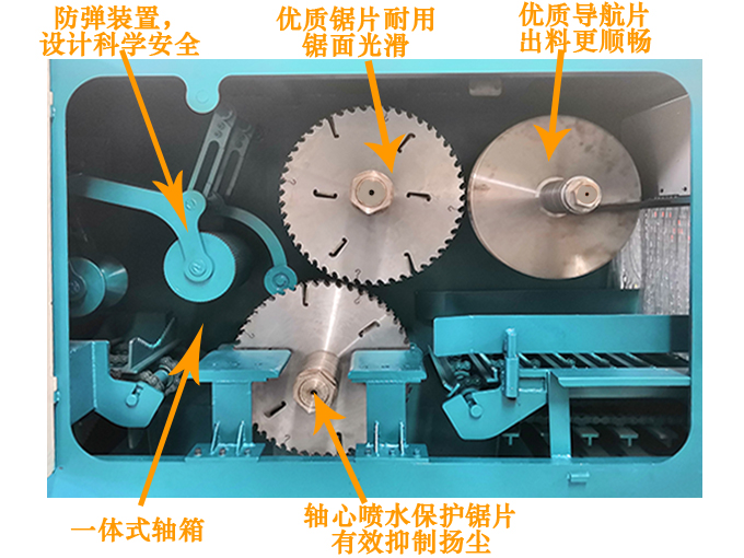 降溫系統(tǒng):采用軸芯噴水技術(shù),防塵環(huán)保,保護(hù)鋸片,能確保鋸片持續(xù)工作,延長(zhǎng)鋸片壽命。