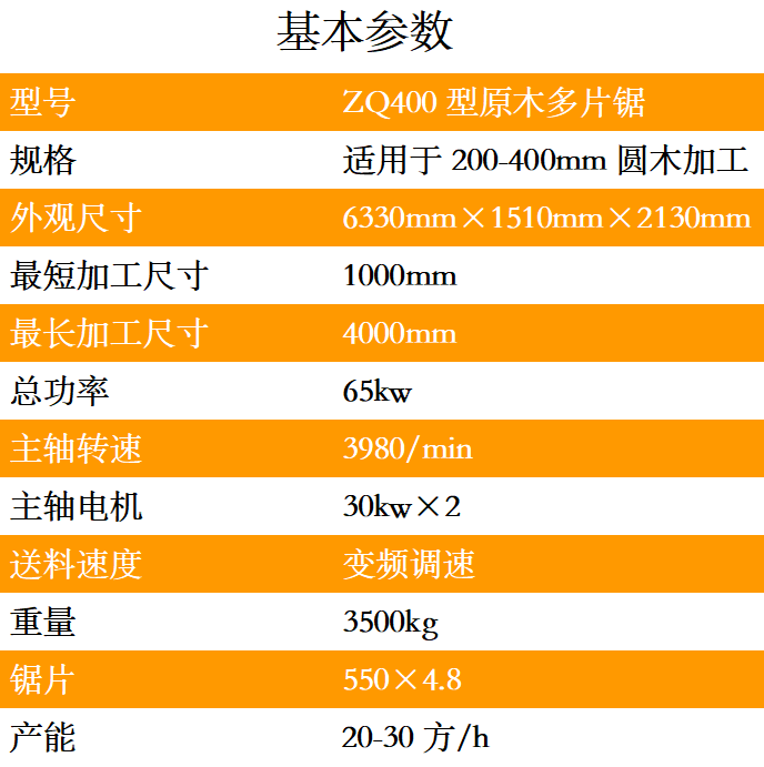 ZQ400型原木多片鋸是一種用于原木的開(kāi)破以及分片的高性能專(zhuān)用機(jī)械