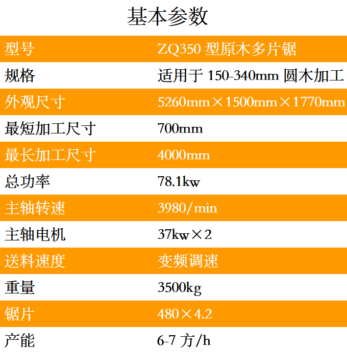 ZQ350型原木多片鋸是一種用于原木的開破以及分片的高性能專用機(jī)械,可根據(jù)客戶要求訂做各種規(guī)格的木板,提高木材的最大利用率