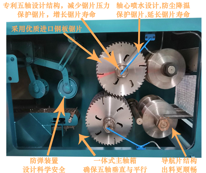 降溫系統(tǒng):采用軸芯噴水技術(shù),防塵環(huán)保,保護(hù)鋸片,能確保鋸片持續(xù)工作,延長鋸片壽命。