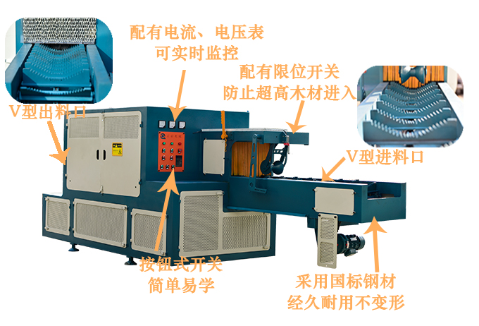 送 料:采用V型鏈條輸送,機(jī)上配有變頻智能調(diào)速器,可以對(duì)大小木料的進(jìn)料速度實(shí)行自由調(diào)速。原木可以實(shí)現(xiàn)自動(dòng)分中,機(jī)上還配有限位開關(guān),防止超去規(guī)格木料進(jìn)入,防止卡木避免對(duì)機(jī)器造成損壞。