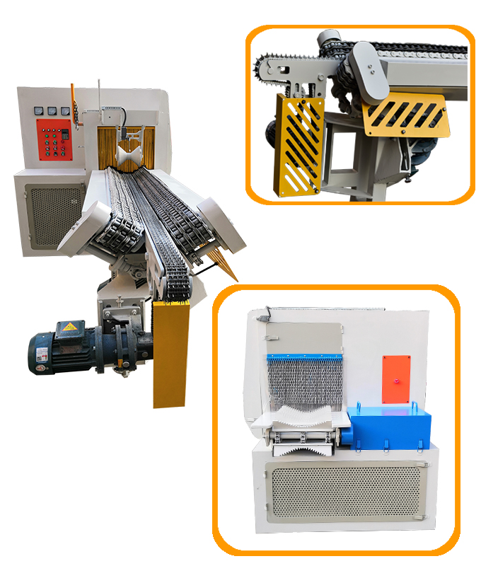 送 料:采用四排尖齒鏈條輸送,機上配有變頻智能調速器,可以對大小木料的進料速度實行自由調速。原木可以實現自動分中,機上還配有限位開關,防止超去規格木料進入,防止卡木避免對機器造成損壞。