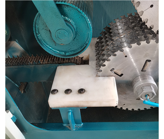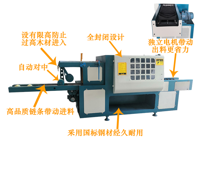 送 料:采用四排尖齒鏈條輸送,機(jī)上配有的變頻智能調(diào)速器,可以對大小木料的進(jìn)料速度實(shí)行自由調(diào)速。原木可以實(shí)現(xiàn)自動分中,機(jī)上還配有限位開關(guān),防止超去規(guī)格木料進(jìn)入,防止卡木避免對機(jī)器造成損壞。