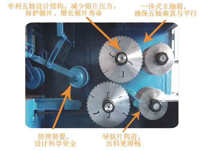 ZQ200型原木多片鋸是針對(duì)原木鋸切而設(shè)計(jì)的專用機(jī)床,采用五軸結(jié)構(gòu)設(shè)計(jì)-前鋸后導(dǎo)航確保木板的精確度,無論木板長(zhǎng)短均可保證鋸切木材尺寸公差在0.2mm-0.5mm之內(nèi),尺寸標(biāo)準(zhǔn)偏差小,節(jié)約木料,上下鋸軸,鋸片采用進(jìn)口帶刮刀鋸片,鋸切表面光滑,無需再刨,保證不燒鋸片。采用自動(dòng)分中裝置,提高木材的利用率;上壓輥主動(dòng)增加壓力,送料平穩(wěn);軸心噴水冷卻鋸片,去脂降溫,增強(qiáng)鋸片的使用壽命。一次多片,大大提高工效;