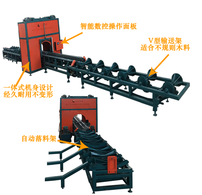 ZQ800型全自動數控斷料鋸是一種用于截斷圓木的專用機械,可取代傳統的斷木設備。本機是上下鋸設計,采用手自一體的液壓驅動,PLC數字控制系統,只需一名普通工人便可輕松操控,穩定性高,加工表面平整光潔,公差在2MM之內,截斷范圍可以隨意調節。加工長度和速度均可根據實際所需規格隨意調節,效率高,是傳統截斷機的2-5倍。鋸片配進口合金鋸片,使用壽命長.適用于原生木材,板材板方的切斷加工.本設備采用輸送臺自動進料,自動感應壓料,自動截斷,輸送臺自動出料等先進裝備,具有操作簡單,安全,效率快,切斷長短可隨意設定,省時省工,大大減輕操作者勞動強度等優點.
