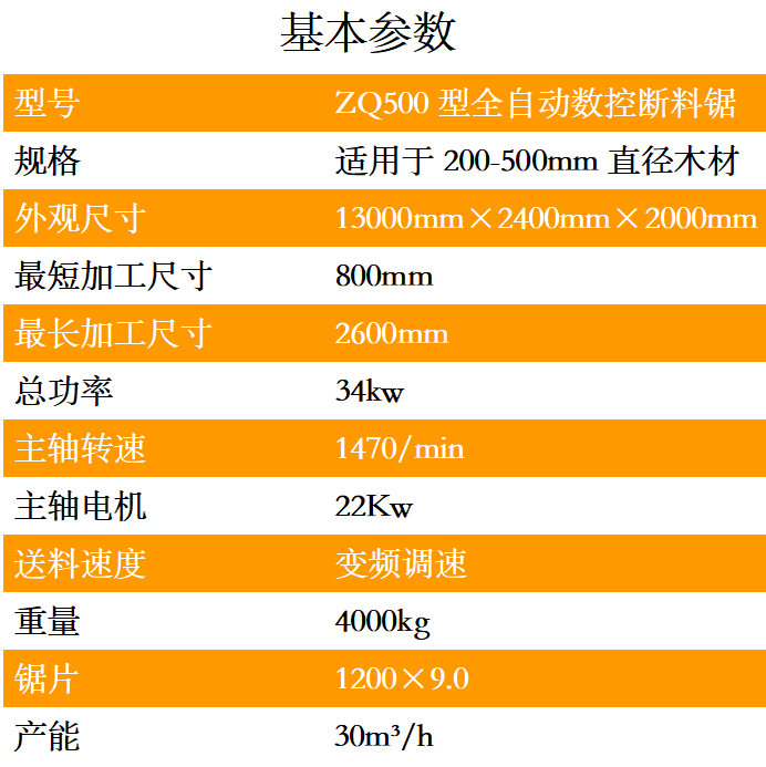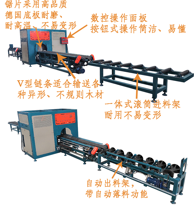 全自動數(shù)控斷料鋸是一種用于截斷圓木的專用機械,可取代傳統(tǒng)的斷木設(shè)備。本機是左右鋸設(shè)計,采用手自一體的液壓驅(qū)動,PLC數(shù)字控制系統(tǒng),只需一名普通工人便可輕松操控,穩(wěn)定性高,加工表面平整光潔,公差在2MM之內(nèi),截斷范圍可以隨意調(diào)節(jié)。加工長度和速度均可根據(jù)實際所需規(guī)格隨意調(diào)節(jié),效率高,是傳統(tǒng)截斷機的2-5倍。鋸片配進口合金鋸片,使用壽命長.適用于原生木材,板材板方的切斷加工.本設(shè)備采用輸送臺自動進料,自動感應(yīng)壓料,自動截斷,輸送臺自動出料等先進裝備,具有操作簡單,安全,效率快,切斷長短可隨意設(shè)定,省時省工,大大減輕操作者勞動強度等優(yōu)點.