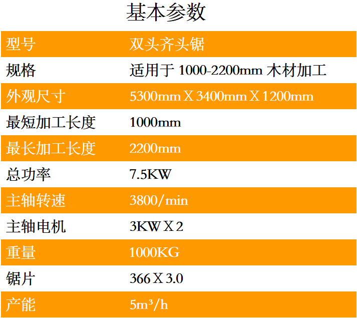 雙頭齊頭鋸機身采用國標鋼材、結構科學、操作簡單、鋸面光滑、誤差小、效率高、故障率低、速度可調,最短1米,最長2.2米,中間尺寸可隨意調節